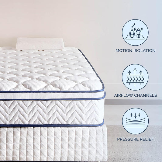 Full Size Mattress, 12 Inch Memory Foam, Independent Spring, Soft and Comfortable Medium Firm Hybrid Mattress in A Box, Pressure Relief