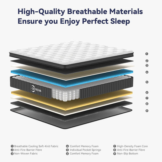 Queen Mattress 12 inch, Hybrid Mattress in a Box, Individually Pocket Springs, Medium Firm Feel for Pressure Relief, Breathable Comfort, CertiPUR-US Certified, Gray&White
