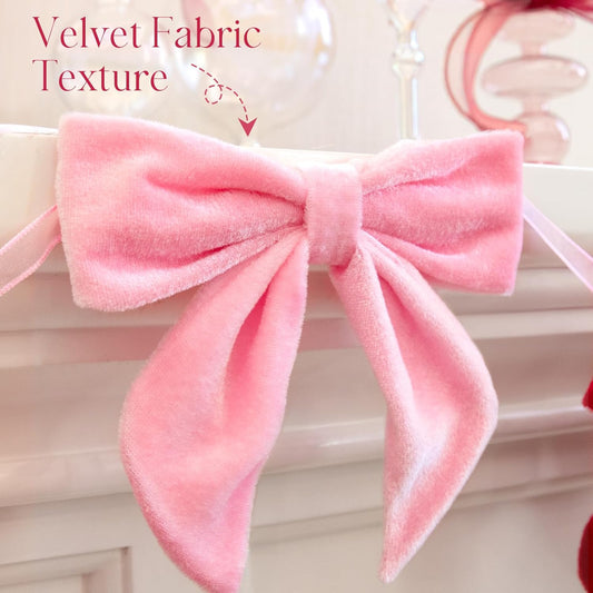 Valentines Day Decorations - 6.5 Ft Pink and Red Velvet Bow Garland - Valentines Day Decor for Home Party Office - Coquette Room Decor for Tree Door Table Wall Window Mantel