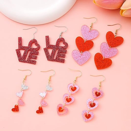 4 Pairs Valentine's Earrings for Women Love Heart Dangle Earrings Valentines Gifts for Wedding Decoration Valentine's Jewelry