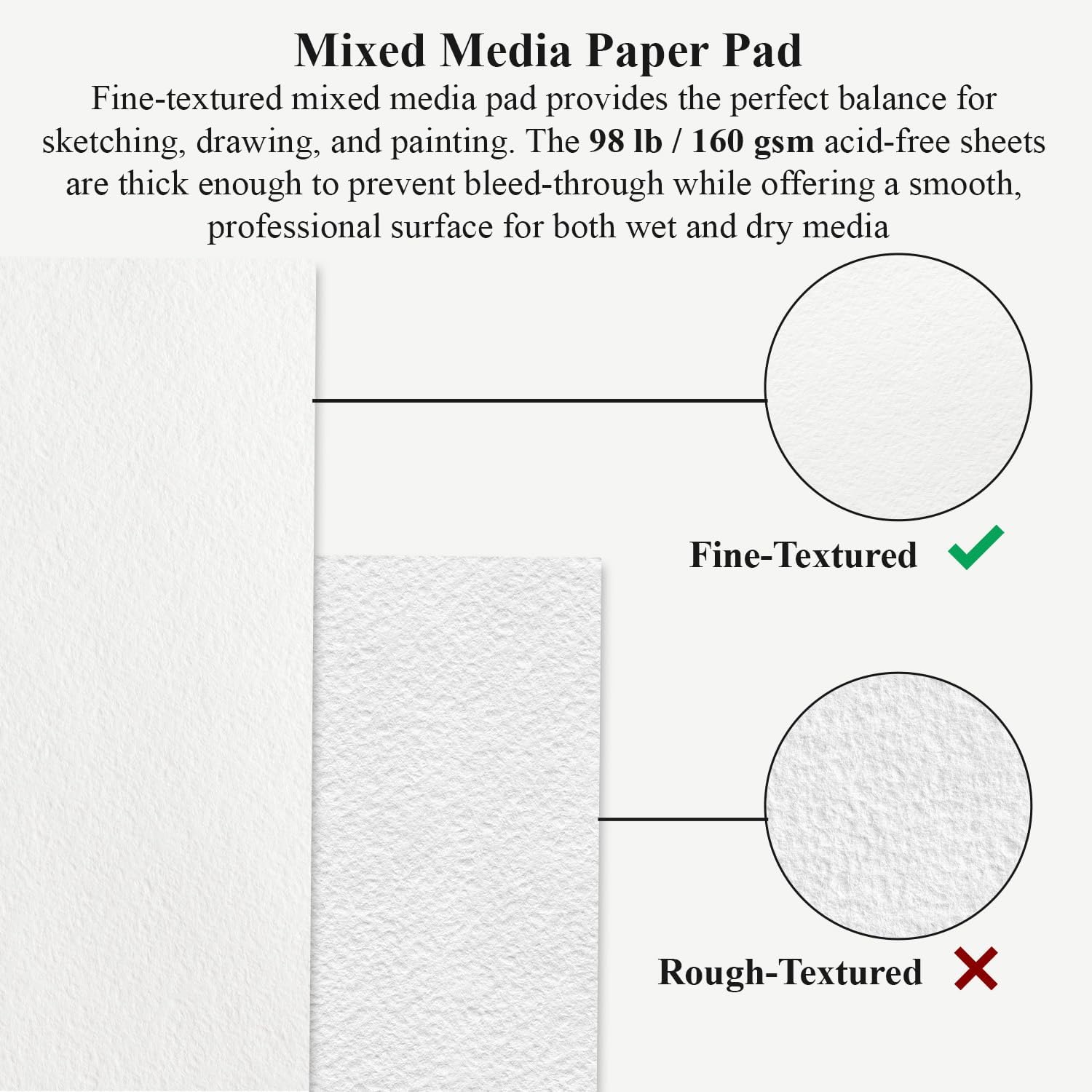 - Available in size of mixed media sketch pad 9x12 Inch, each mixed media sketch pad with 60 sheets, this mixed media pad are suitable for all your needs! A multi media sketch book can be tucked into a bag or backpack, perfect for branding your imagination and documenting your ideas anytime, anywhere.