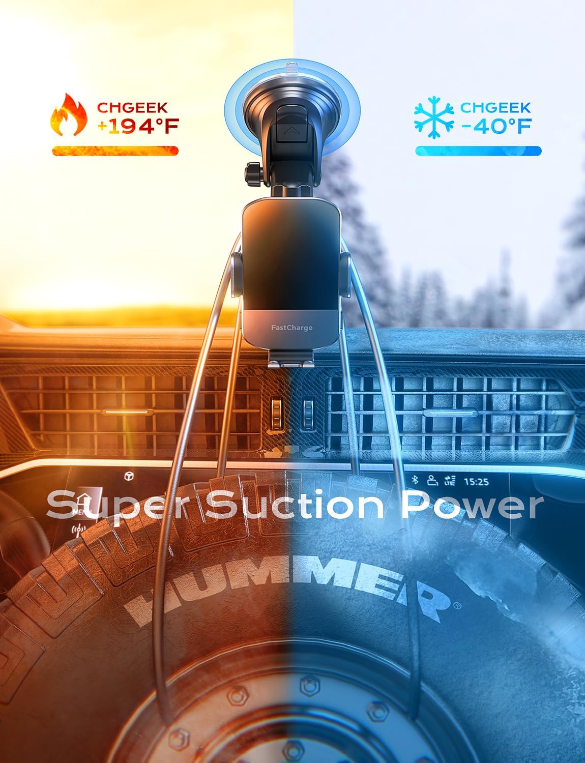 - Case Friendly & Flexible Angle Adjustment Enjoy hassle-free charging through phone cases up to 6mm thick with our CH Geek phone holder for car. Please note that metal cases, magnets, credit cards, grips, and stands may interfere with charging. For optimal viewing and safe driving, the 360° rotating sphere and retractable & foldable bracket allow you to adjust the angle to your preference.
