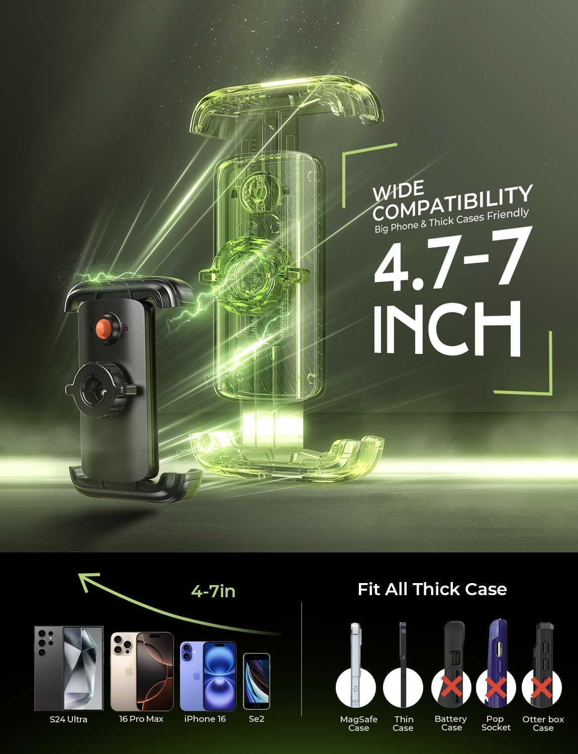 - Wide Compatibility for Phones Universal phone holder for bike in the market is adjustable for 4.7-6.8", thickness up to 15mm (including phone case), but LISEN bike phone holder fits cell phones 4.5-7", thickness up to 20mm, fits nearly all phones, Such as iPhone 16 Pro Max, Samsung Galaxy S24 Ultra.