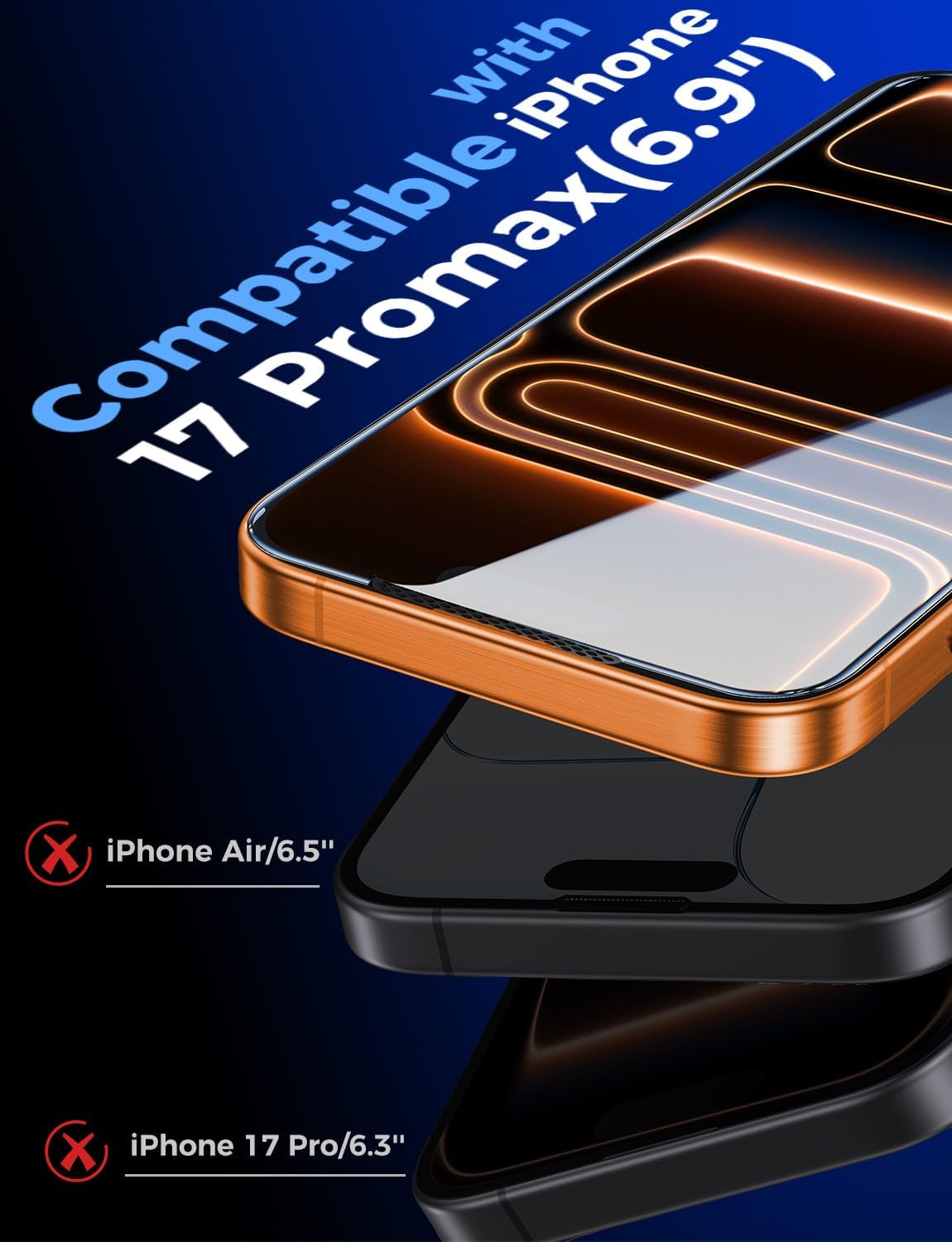 - Screen Protector Compatible with iPhone 17 Pro Max 6.9" Specially designed ONLY for iPhone 17 Pro Max 6.9", 100% touch accurate. Not compatible with any other iPhone models.