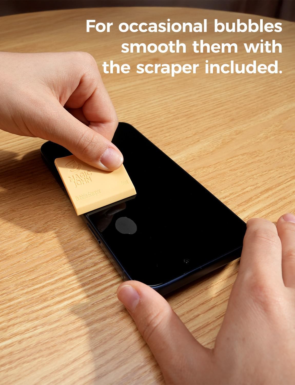 - Anti-Fingerprint Magic John tempered glass screen protector for iPhone 17 Pro Max 6.9" is finished with oleophobic coating to against oil residue from fingerprints from long-term use.