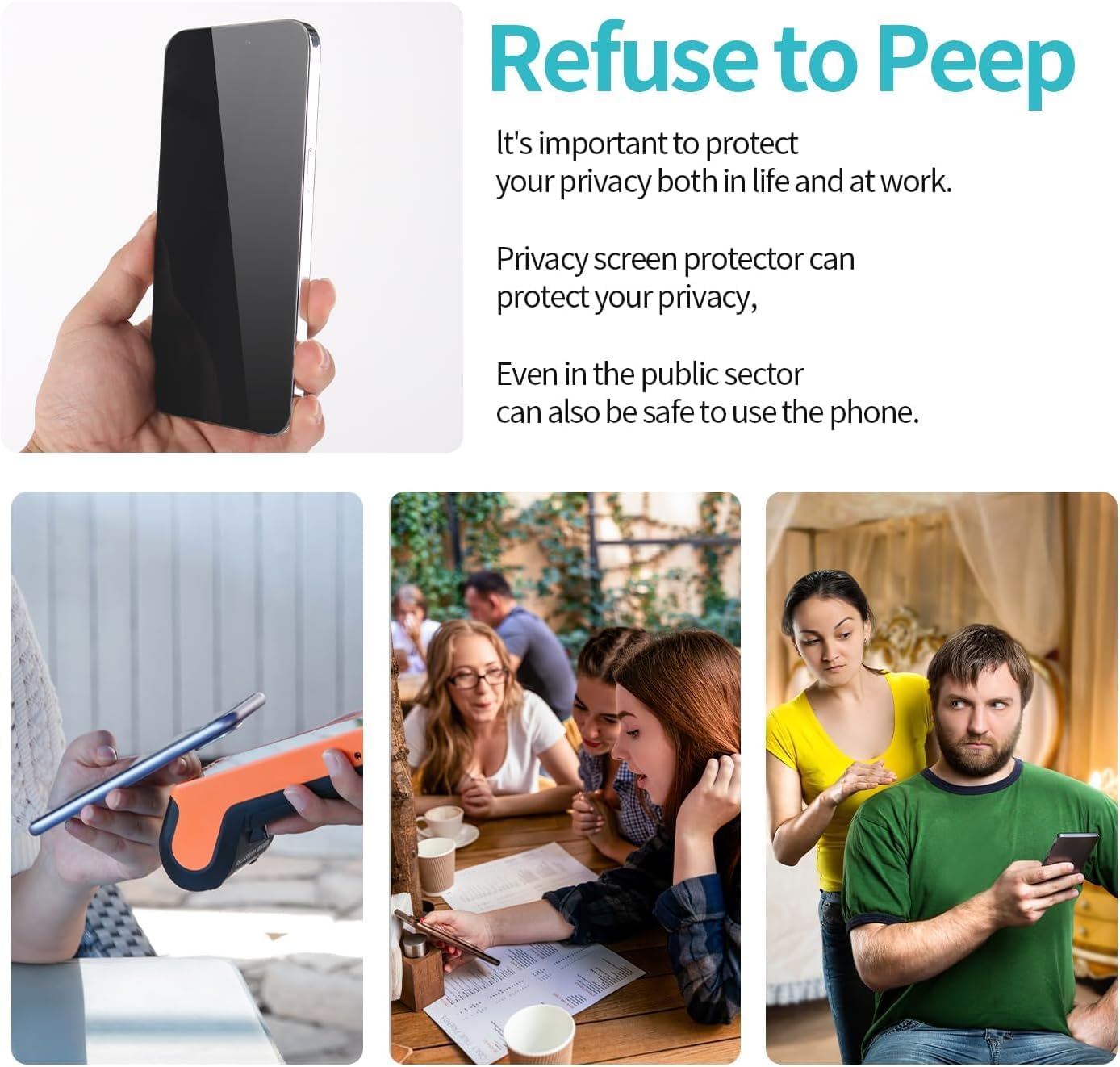 - High Privacy Protection - The necessary choice for you in public places. Select the optimal anti-peeping angles for the anti-spy coating to balance privacy and visual comfort. Protect your personal privacy and sensitive information from being seen by people nearby who might peek. To better protect your phone, 3mm nano-scale ultra-thin aviation glass is chosen as the material, it also protects your eyes from harsh light, ensuring a softer visual effect.