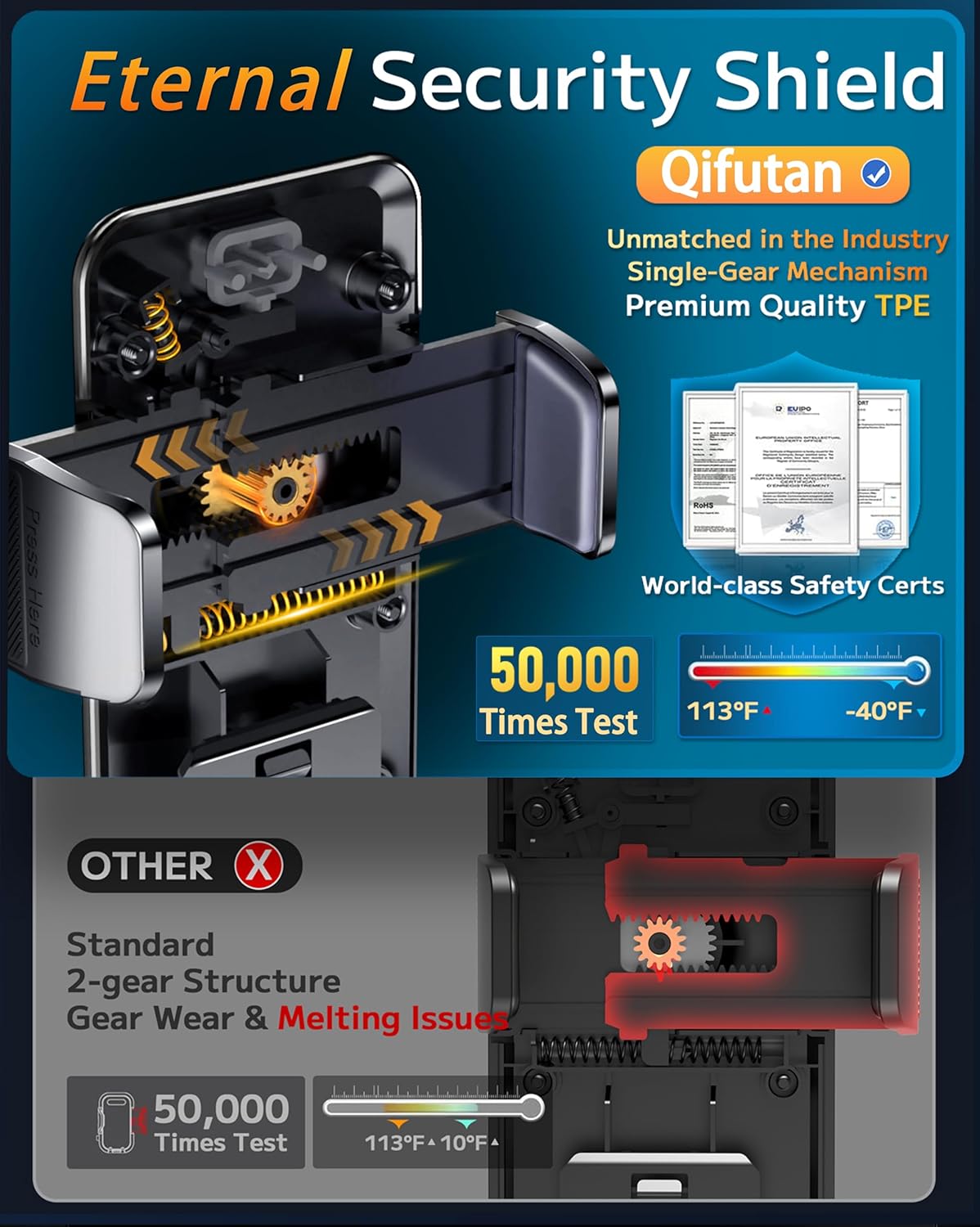 - Strong Suction Performance: Car phone holder comes with a double-locked suction cup made of heat-resistant TPU material, guaranteeing it stays firmly attached to your dashboard even in extreme heat. Reactivate its sticky power by washing with water and air-drying.