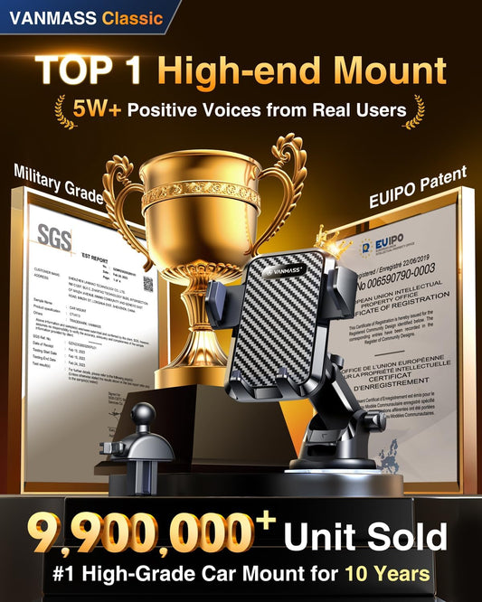 VANMASS 85+LBS Strongest Suction & Military-Grade 2025 Ultimate Car Phone Mount Patent & Safety Certs Cell Phone Holder Truck Stand for Dashboard Windshield Vent for iPhone 17 Pro Max 16 15 Samsung