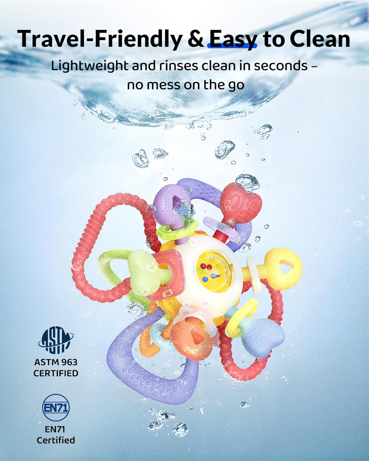 - Safe & Non-Toxic for Your Baby – Crafted from food-grade silicone and BPA-free plastic, this toy ensures your baby is chewing on a safe, non-toxic product. No need to worry about harmful chemicals, making it a must-have for your newborn essentials