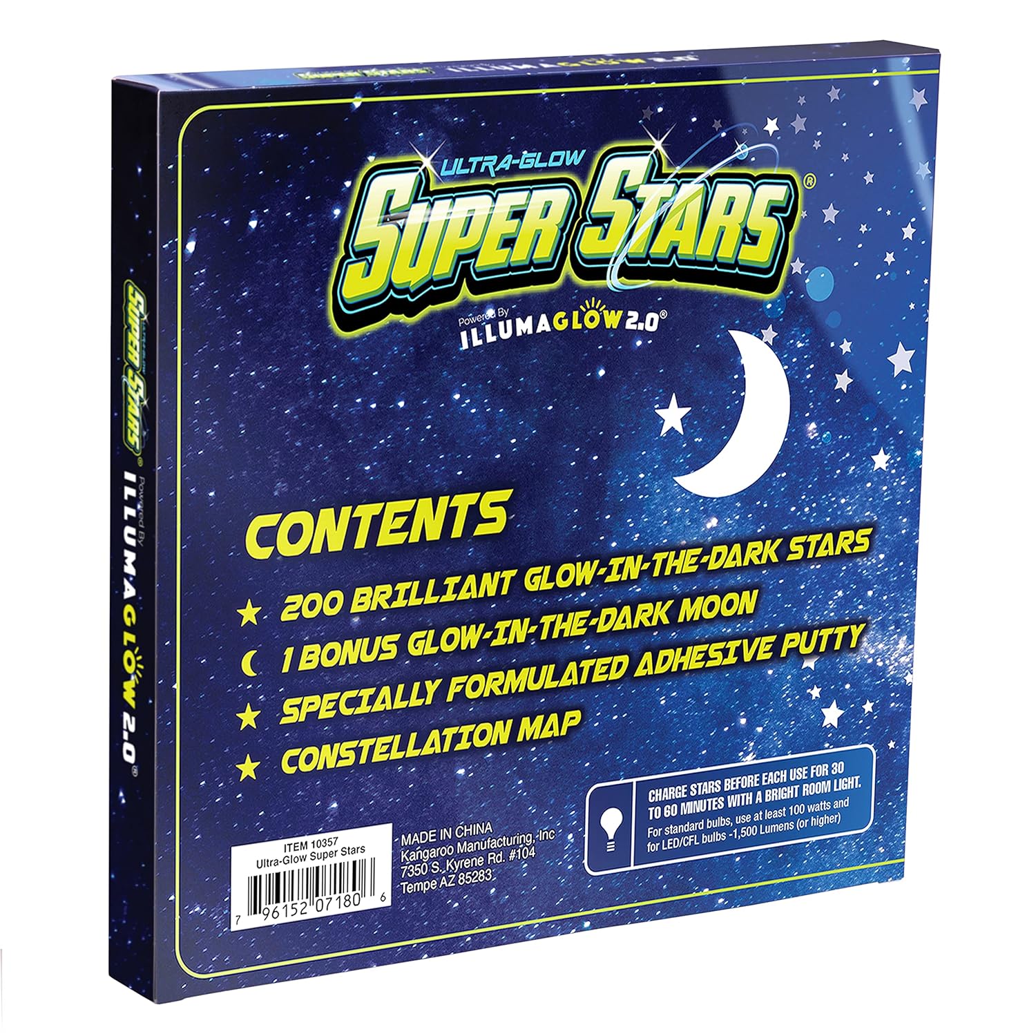 - *Important* - Charging Up Your Glow Stars immediately before each use with a bright room light is key to maximum glow performance. For standard bulbs, use at least 75-100 watts and for LED or CFL bulbs, use one that is rated at 1,500 Lumens (or higher).