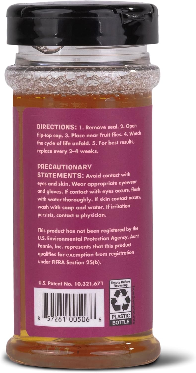 Aunt Fannie's FlyPunch Fruit Fly Trap for Indoor and Kitchen Use, Ready to Use, Made with Plant Based Ingredients, Safe Near Food, Each Bottle Lasts Up to 30 Days, Pack of 2