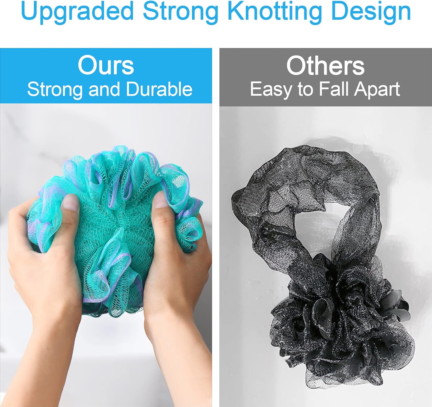 - Strong knotting design: The improved version of the loofah adopts special reinforcement and knotting technology, which greatly enhances the firmness and durability of the internal connection of the bath sponge.
