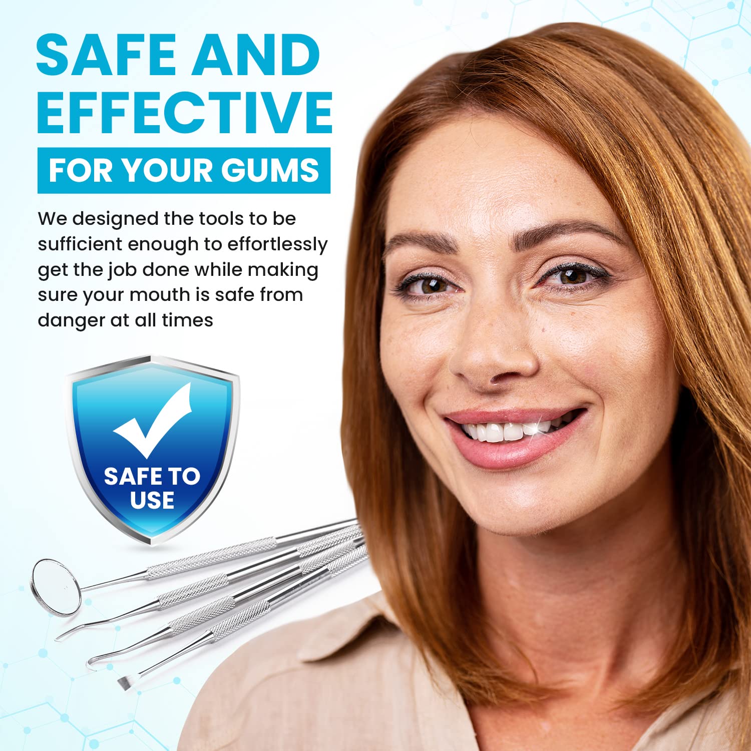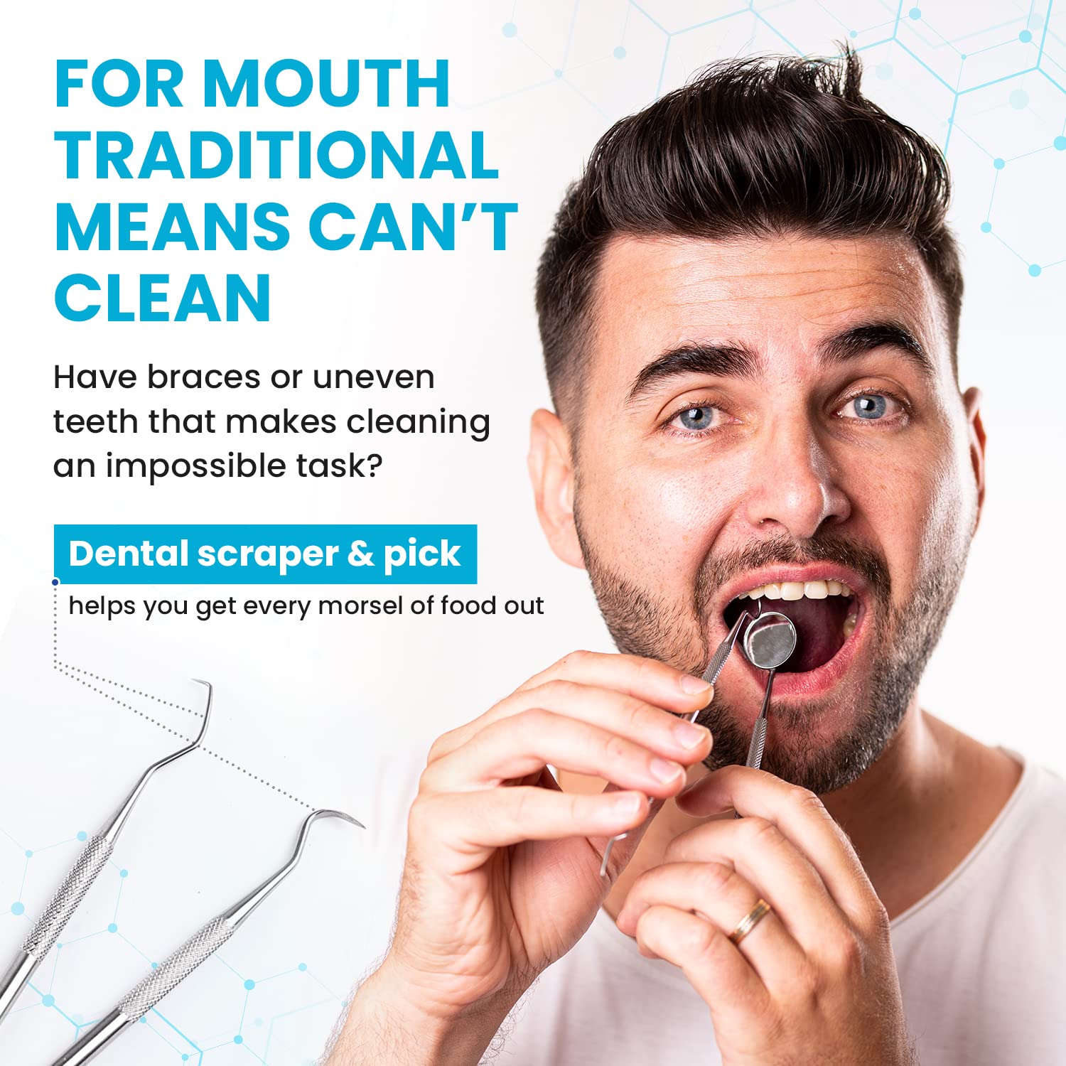- Plaque Remover for Teeth: A toothbrush only cleans visible surfaces; our powerful dental tools with dental pick reach the spots that you miss. Plus, of it, our dental mirror for teeth allows you to see every inch inside of your mouth delivering a precise clean for you.