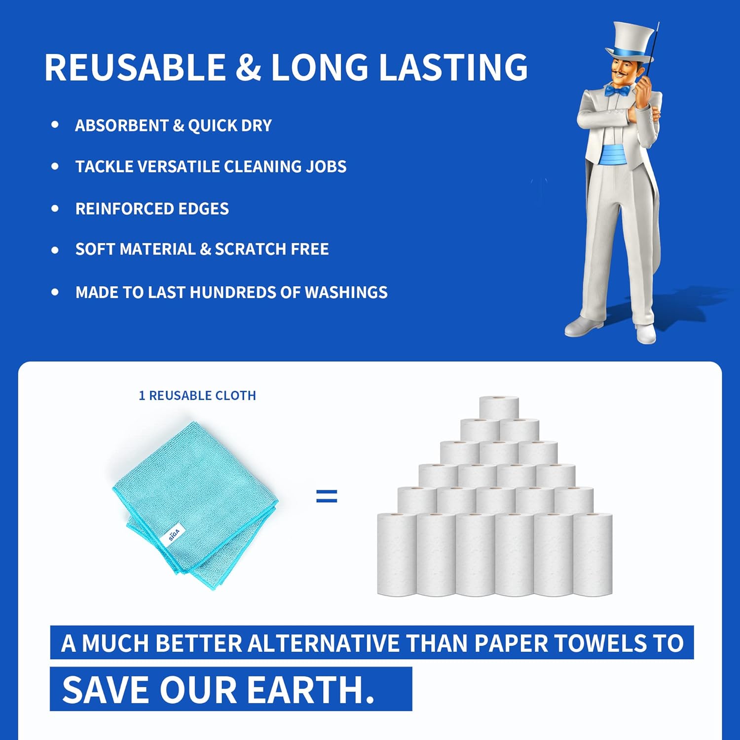 - MR.SIGA Microfiber Cleaning Cloth,Pack of 12,Size:12.6" x 12.6"