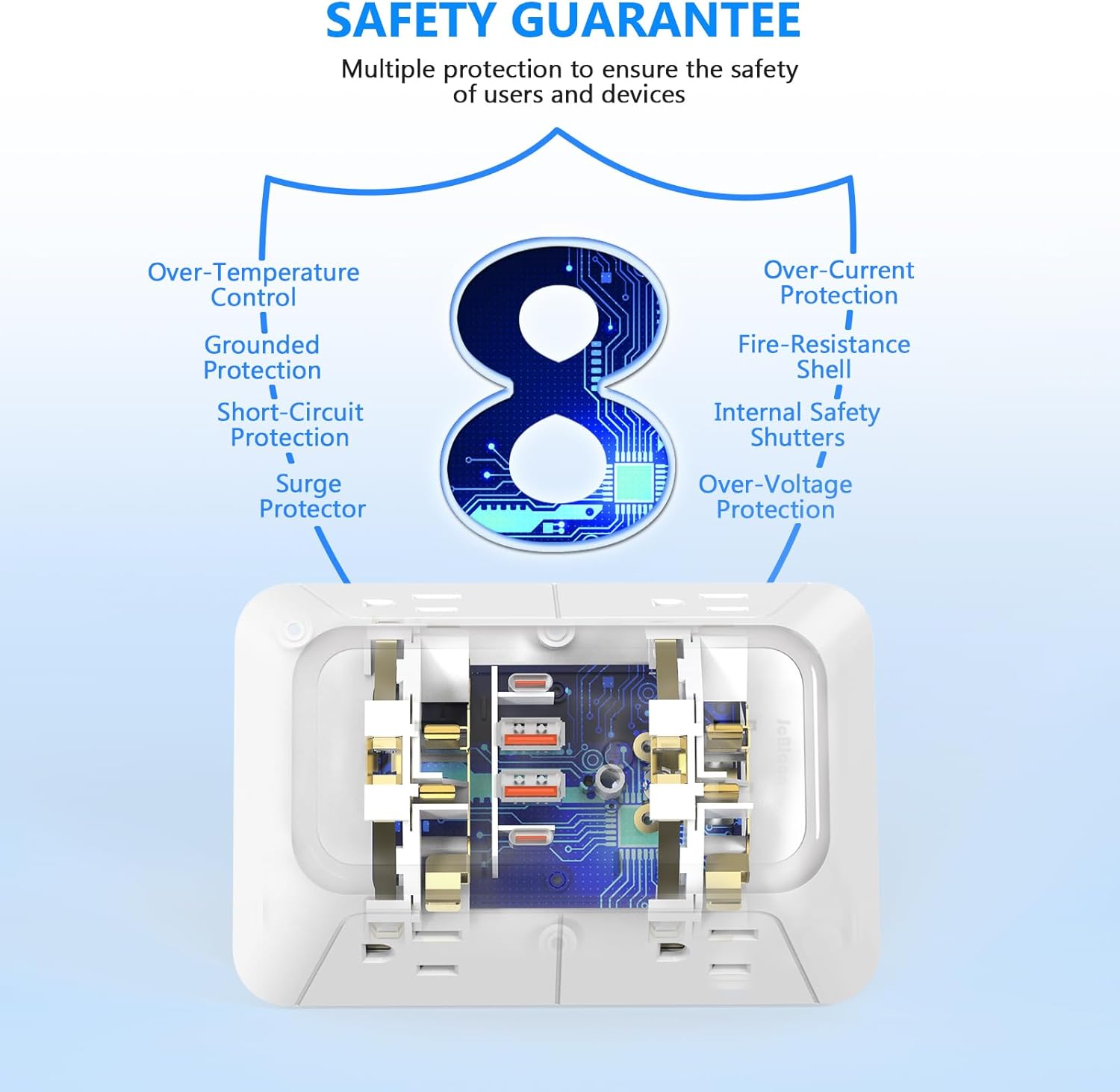 Maximize your wall outlet space with this Outlet Extender Surge Protector, designed to power multiple devices at once. Featuring 6 AC outlets, 4 USB ports (including 2 USB-C), and a 3-sided plug design, this compact wall adapter is ideal for your home, office, kitchen, or travel setup. Built-in surge protection keeps your devices safe from power spikes.