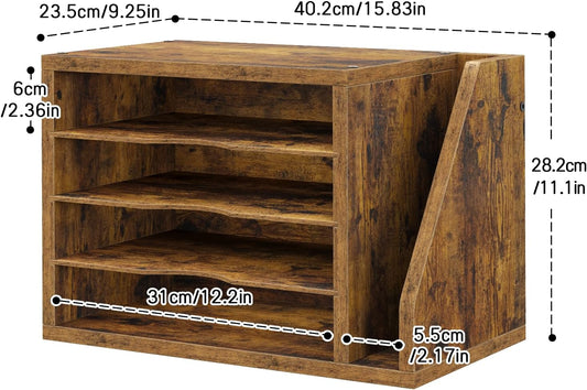 File Organizer Desktop, Wood Desk Organizer with 3 Adjustable Shelves, Mail Paper Sorter for Office, Home, File Holders for Envelopes, Mail Supplies or Magazines, Rustic Brown