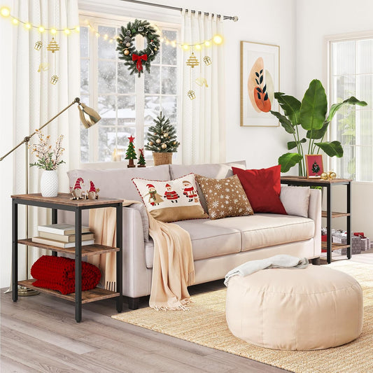 TUTOTAK End Table, Set of 2, Side Table, Nightstand, 2-Tier Storage Shelf, Sofa Table for Small Space, Living Room, Bed Room TB01BB035