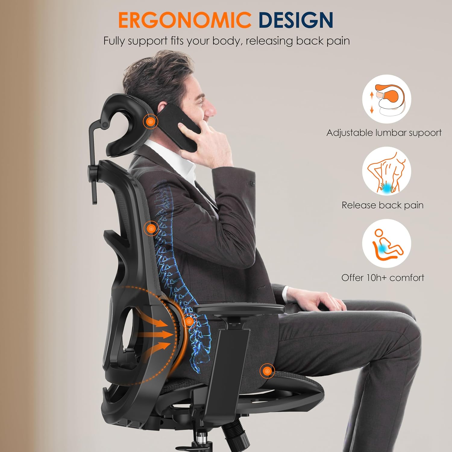 - Adjust Lumbar Support As You Want - Featuring 4 lockable height positions, effortlessly raise and lower the lumbar support. Easy to operate, catering to users of various body types and support your back. GABRYLLY ergonomic office chair passed professional tests such as SGS and BIFMA, the study ergonomic chair bear a weight of 300 LBS.