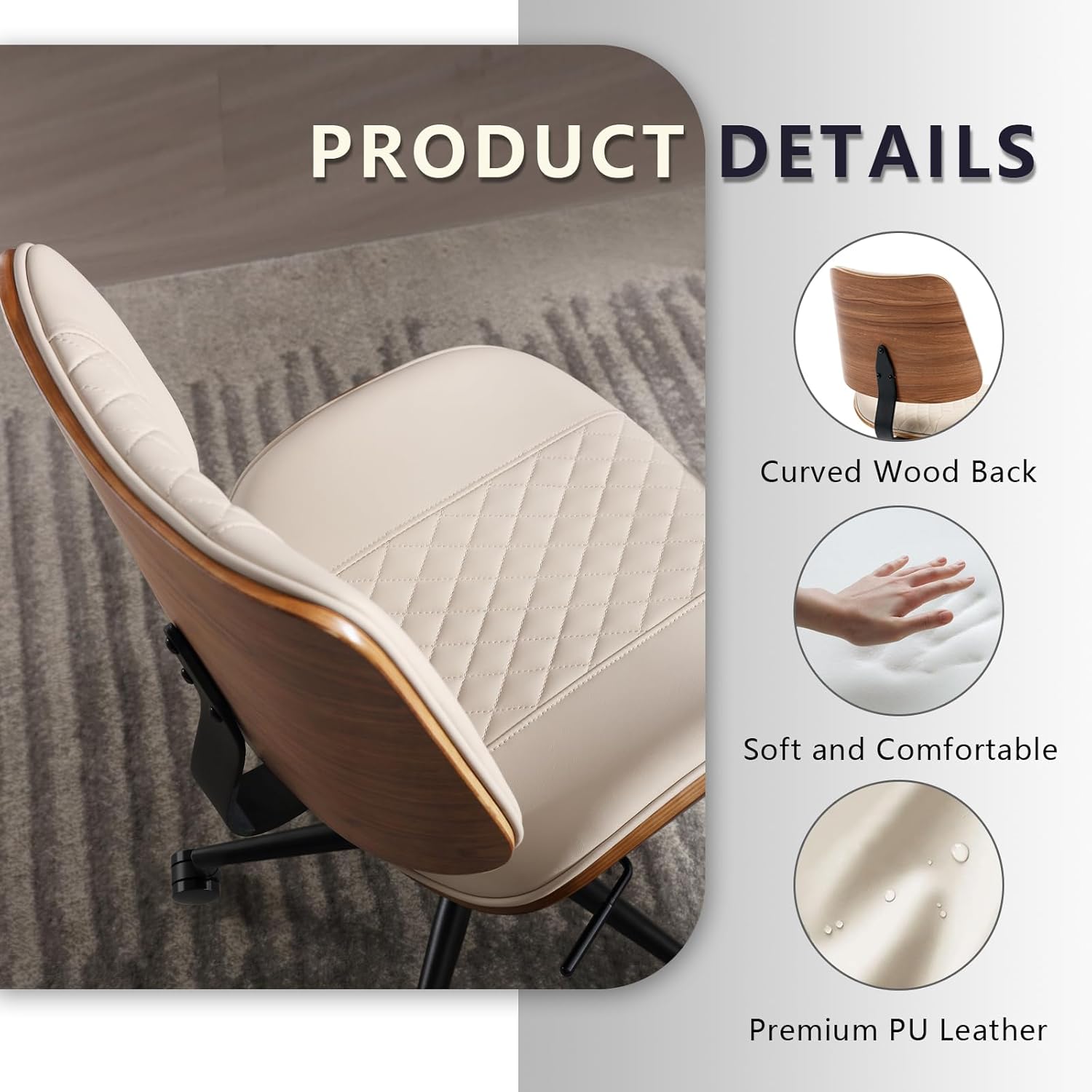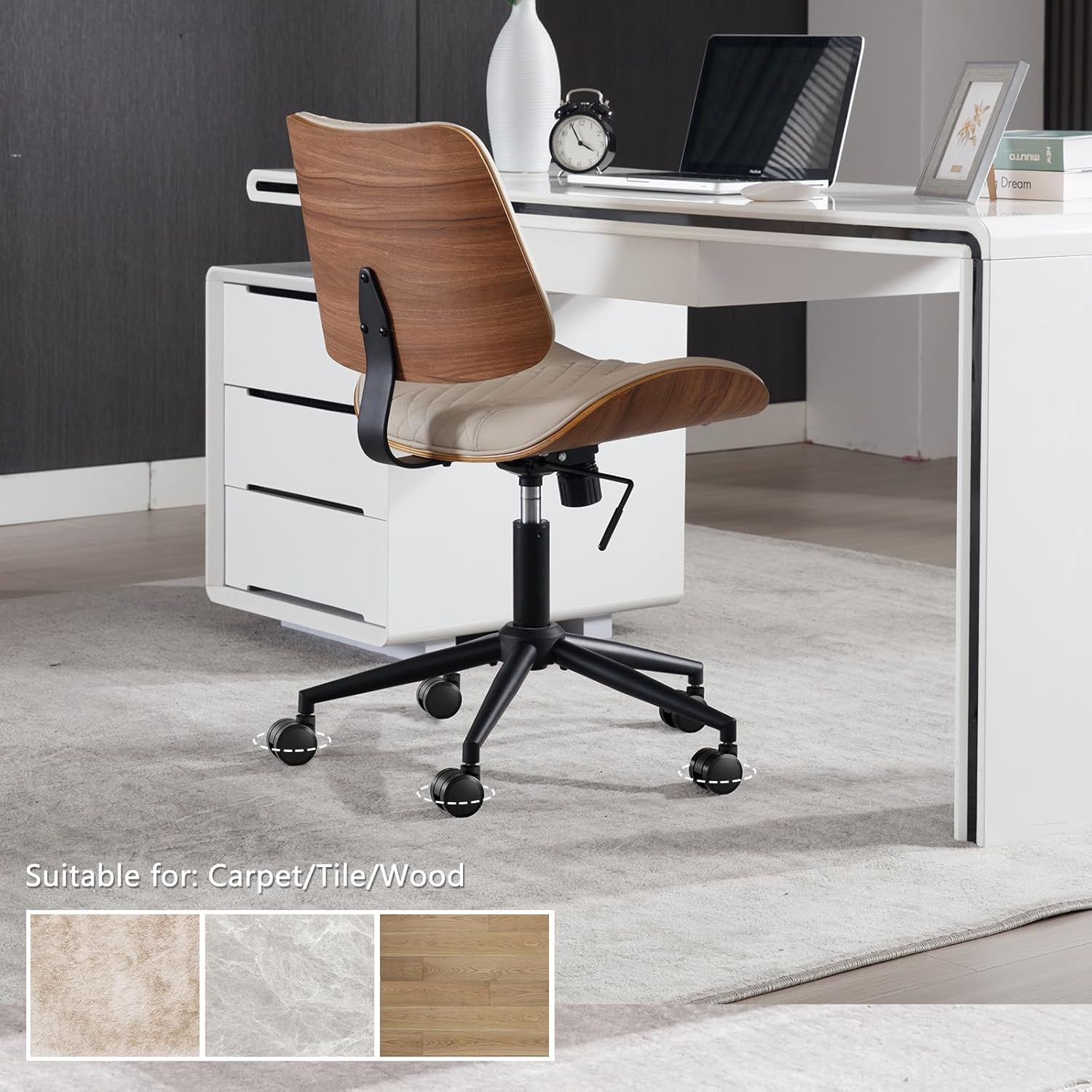 - Premium PU Leather & Modern Walnut StyleThis armless office chair is made of smooth PU material, ensuring breathability and easy cleaning with a cloth. It’s also waterproof and wear-resistant. It features a modern design with a stylish curved backrest, creating a sophisticated appearance that enhances the ambiance of your home/office. It is perfect for office, meeting, study room, and bedroom. Please note that the product color may vary slightly under different lighting conditions