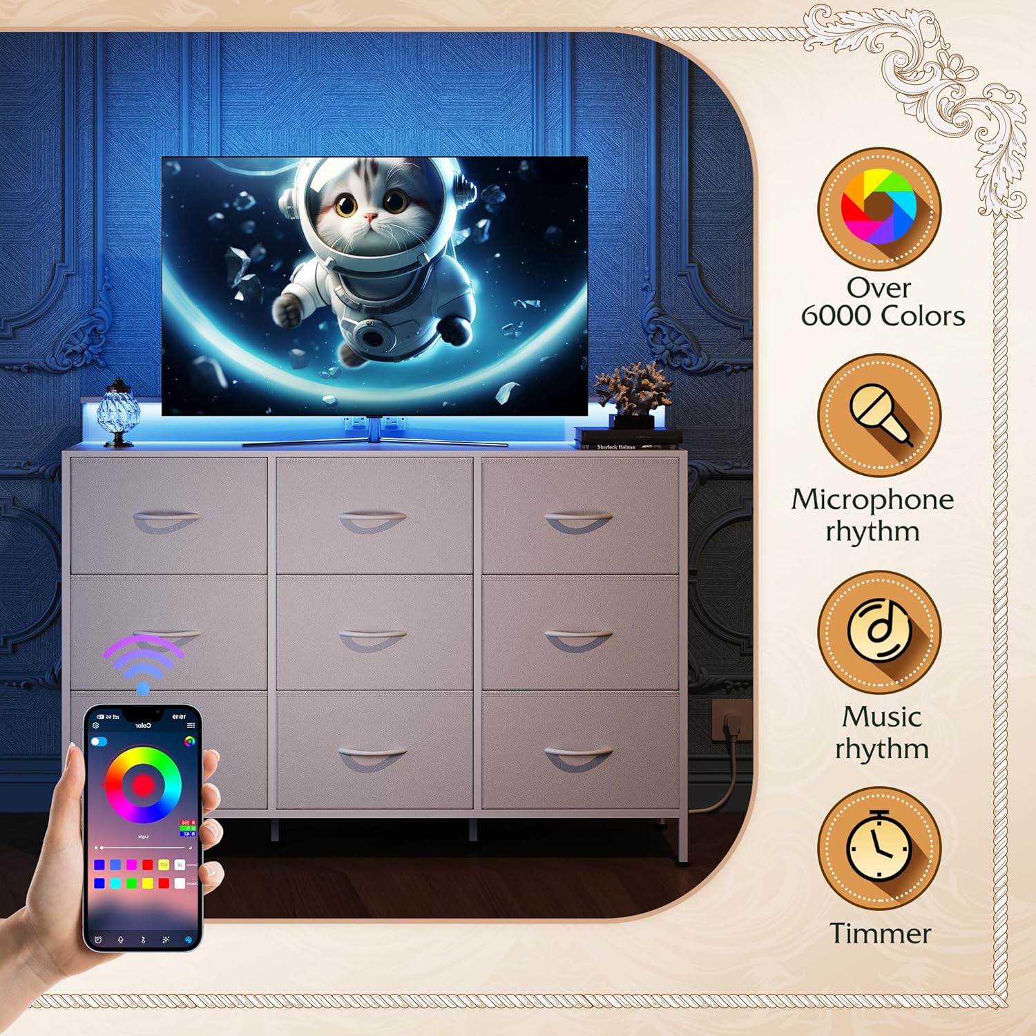 - Multifunctional dressers & chests of drawers 60000 color rhythm, define your space mood with one click, easily adjust the light intensity and speed level via remote control or APP. It flexibly adapts to various scenes such as bedroom, living room, esports room, and the lighting can be synchronized with music to provide a personalized atmosphere for movie nights, games, and family gatherings!