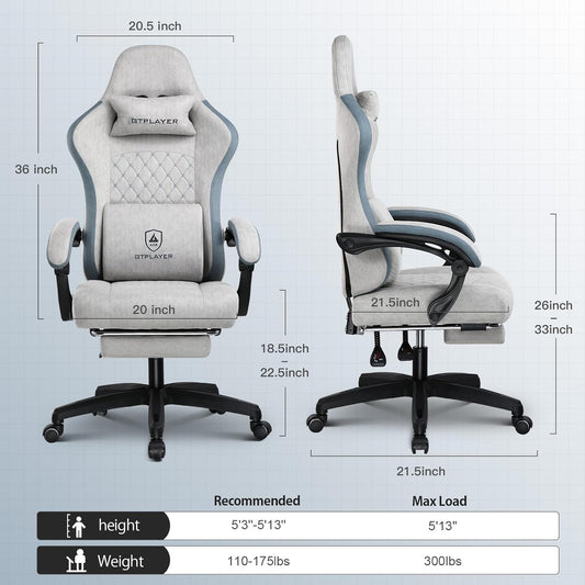GTPLAYER Gaming Chair, Computer Office Chair with Pocket Spring Cushion, Linkage Armrests and Footrest, High Back Ergonomic Computer Chair with Lumbar Support Task Chair with Footrest