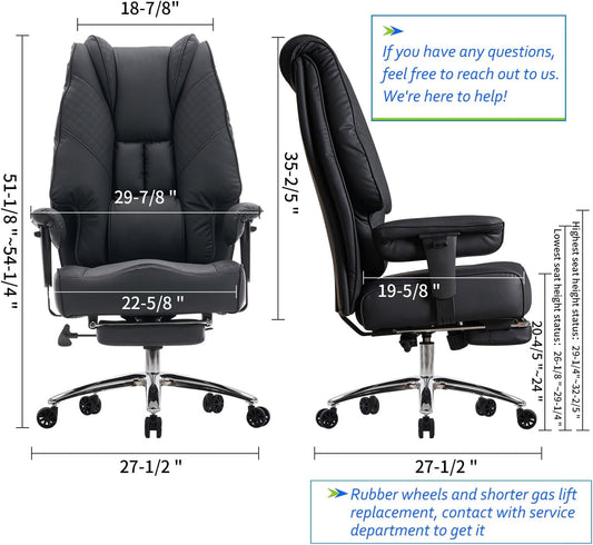 Big and Tall Office Chair 400lbs Wide Seat, Leather High Back Executive Office Chair with Foot Rest, Ergonomic Chairs Lumbar Support for Lower Back Pain Relief (Black)