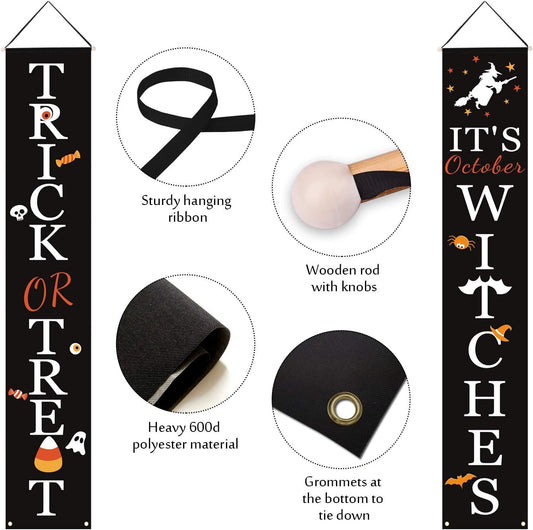 DAZONGE Halloween Decorations, Trick or Treat & It's October Witches Porch Banners for Halloween Hanging Decorations Indoor Outdoor