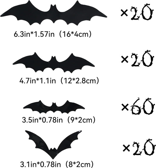 Bobobag 120 Pcs 3D Bats Halloween Decorations,Halloween Wall Decor 4 Sizes Black Bats Sticker for Wall Window