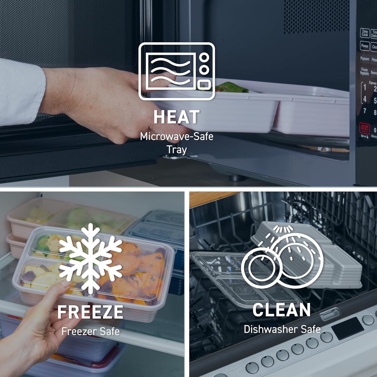 Heat directly from the fridge or freezer. Microwave-safe trays (lids not microwavable), top-rack dishwasher safe, and freezer-ready for maximum convenience.