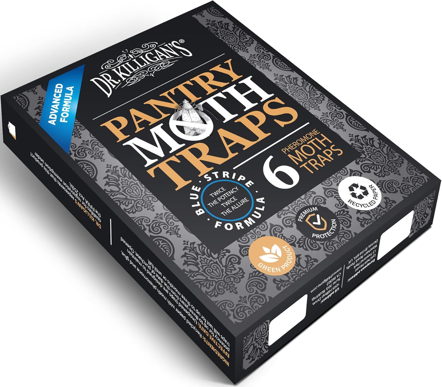 - Dr. Killigan's Premium Double Potent Pantry Moth Traps with Pheromones Prime, Sticky Indian Meal Moth Traps for Kitchen, How to Get Rid of Moths in House (6 Pack, Black)