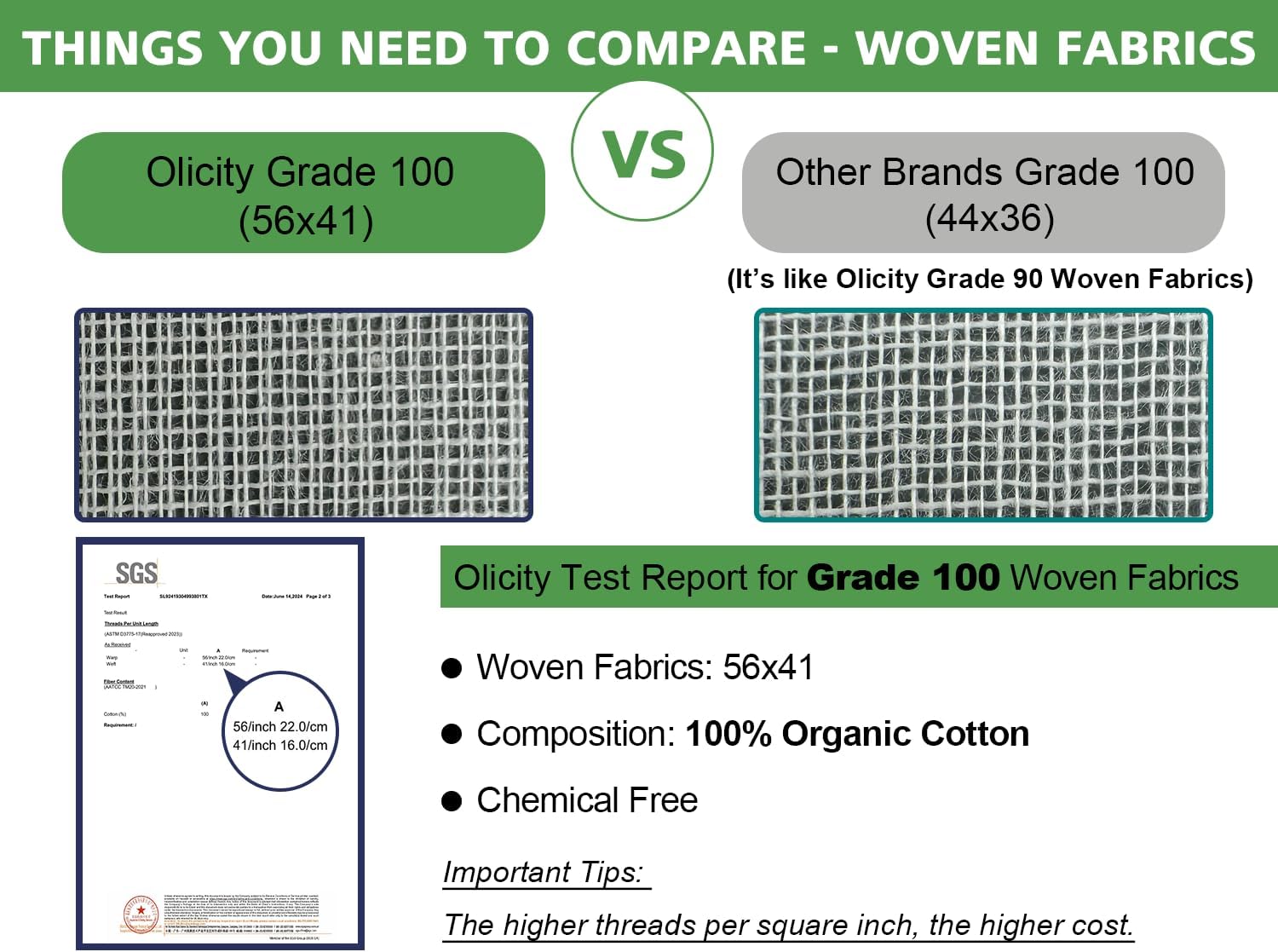 - SGS Tested Grade 100 - Our woven fabrics is 56x41. Didn't reduce threads. No Easy to Tear - The higher threads per square inch, the higher cost. You got what you pay.
