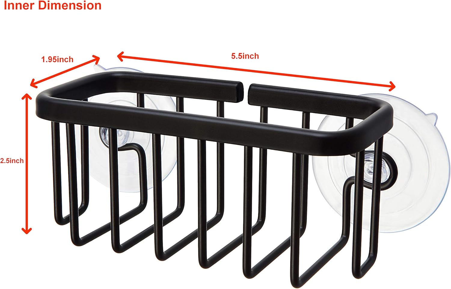- SunnyPoint NeverRust Kitchen & Bathroom Sink Caddy for Sponges, Scrubbers, Soap, 6" x 2.5" x 2.75", with Adhesive Mount - Additional Suction Cup Included –Aluminum (Black)