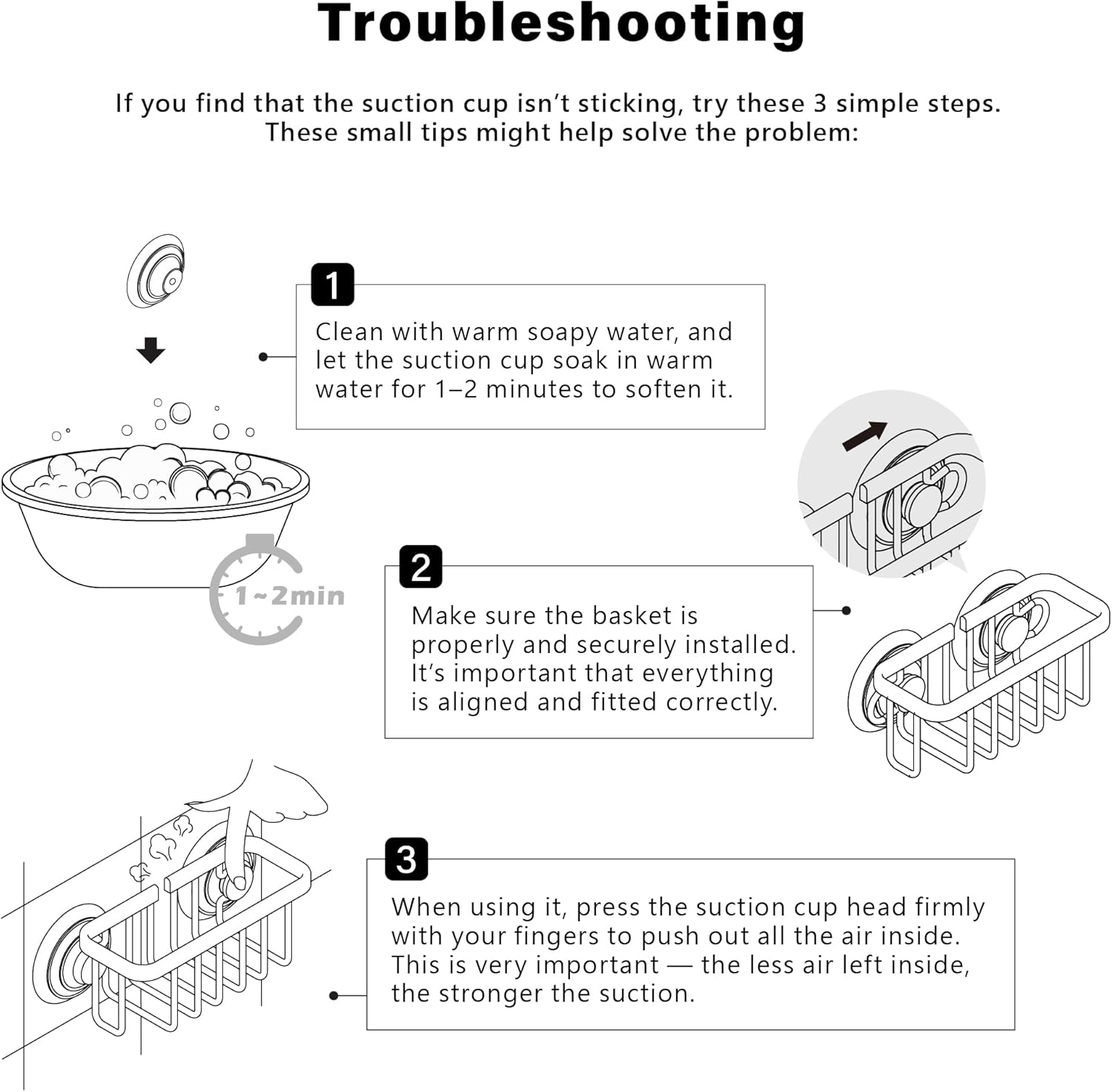 - Easy Tips for Better Suction If the suction cup isn’t sticking, try these: 1. Clean both the surface and suction cup with warm soapy water. 2.Soak suction cup in warm water for 1–2 minutes to soften. 3.Press suction cup head firmly to remove air bubbles. 4.Ensure installation on flat surfaces, not corners or curves.