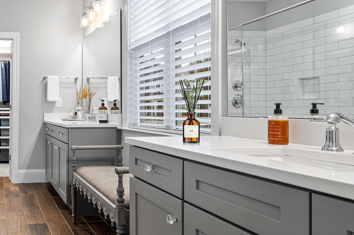 - WEALD TRIBE Flower Reed Diffuser Set Eucalyptus & Lavender Scent For Bathroom Accessories Shelf Decor & Air Fresheners, Sticks Defusers With 4.0 fl oz Essential Oils, House Bedroom Office Decor & Gift