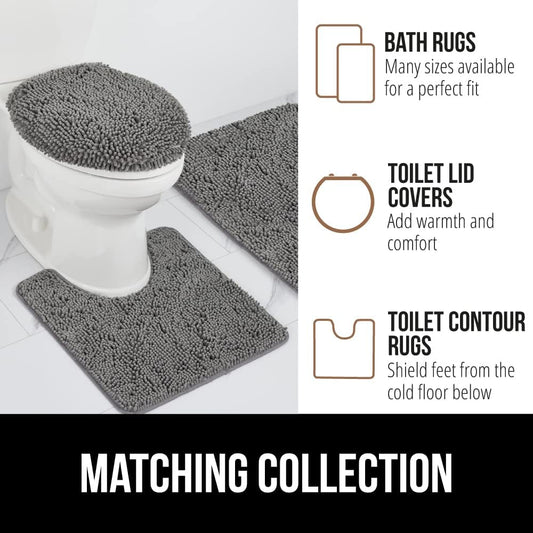GORILLA GRIP Bath Rug Mat, Thick Soft Absorbent Chenille, Quick Dry Microfiber Mats, Rubber Backing Washable Shower Floor Rugs, Bathmat Runner, US Designed Bathroom Home Decor Accessories 24x17, Grey