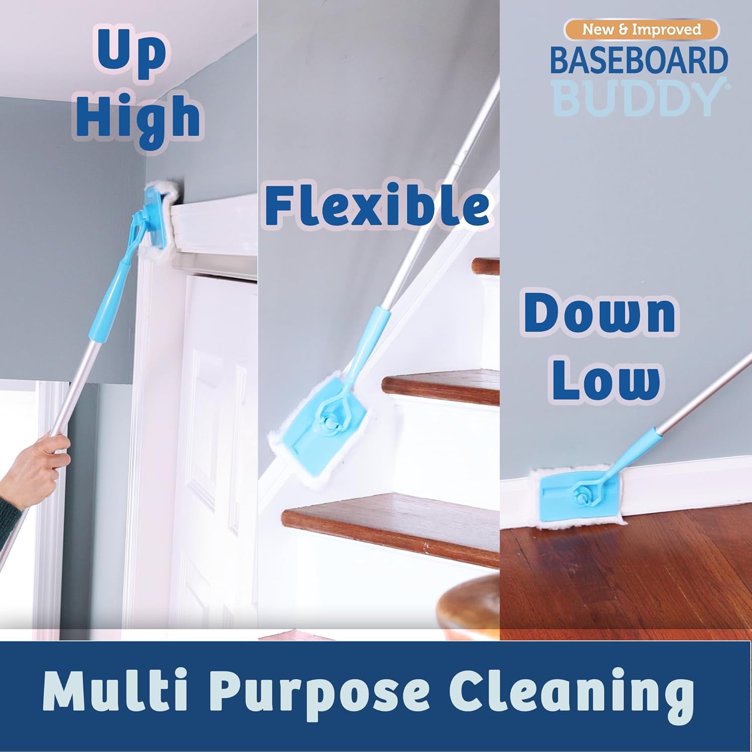Baseboard Buddy – Baseboard & Molding Cleaning Tool | Adjustable Handle & 3 Reusable Microfiber Pads