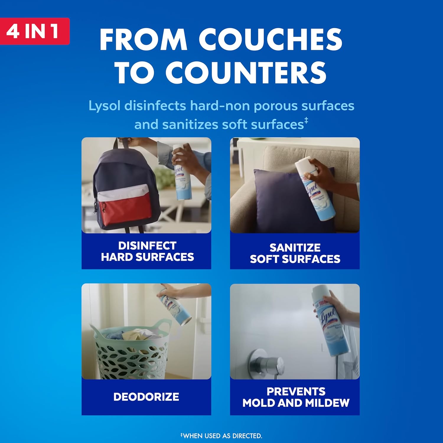 - Lysol Disinfectant Spray, Household Essential Cleaning Supplies, Multi-Purpose Room Spray, Antibacterial Sanitizer Spray, Upholstery Deodorizer, Home and Bathroom, Crisp Linen,19 Fl Oz (Pack of 2)
