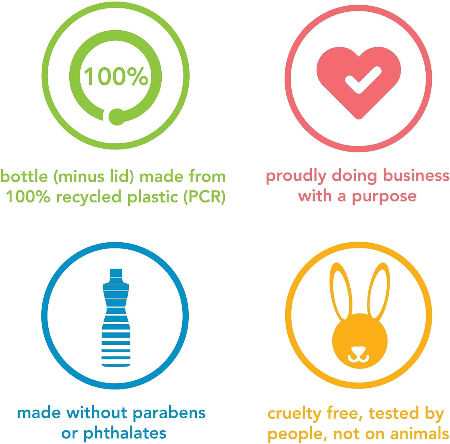 - Bottle (minus lid) made of 100% recycled plastic (PCR).