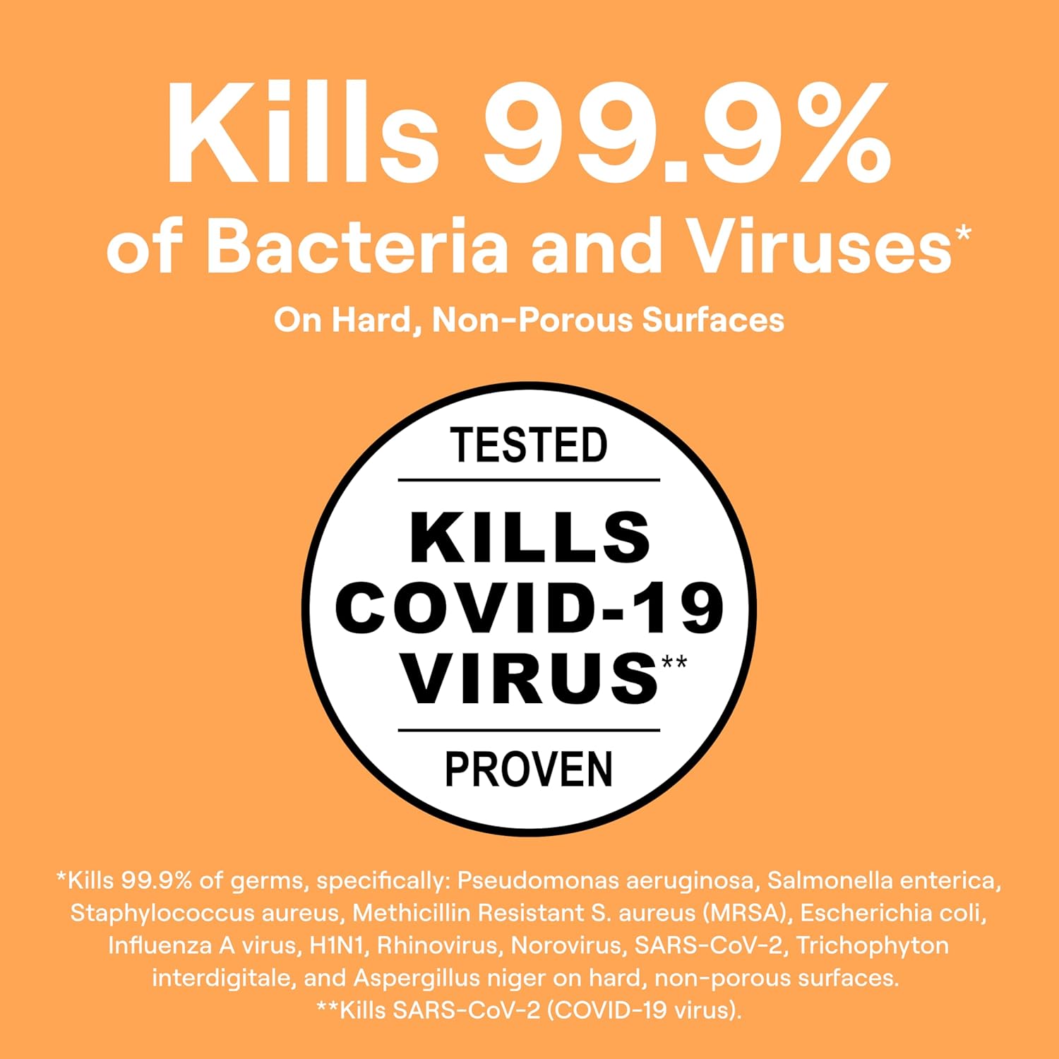 - Disinfecting Multi-Surface Cleaner kills 99.9% of bacteria and viruses and COVID-19 virus on hard non-porous surfaces (refer to product label for details)