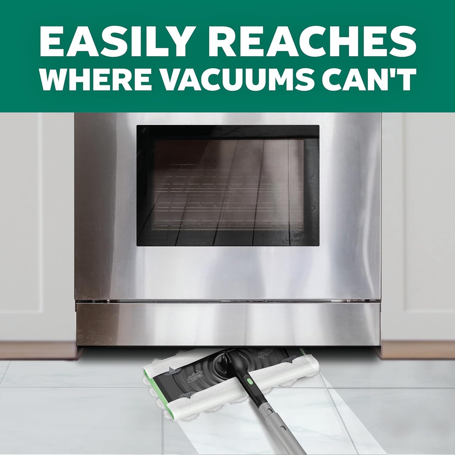 This versatile tool lets you switch easily between dry sweeping and wet mopping. Use the dry cloths to trap fine dust, hair, and dirt, then switch to the pre-moistened wet cloths to scrub away sticky messes and spills. The reinforced pole and locking swivel head offer better control and access to tight corners and baseboards.