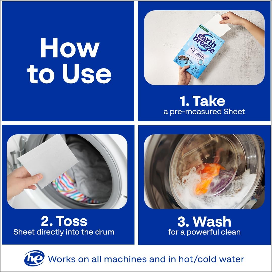 Place 1 sheet directly into the washer drum (or tear in half for smaller loads)