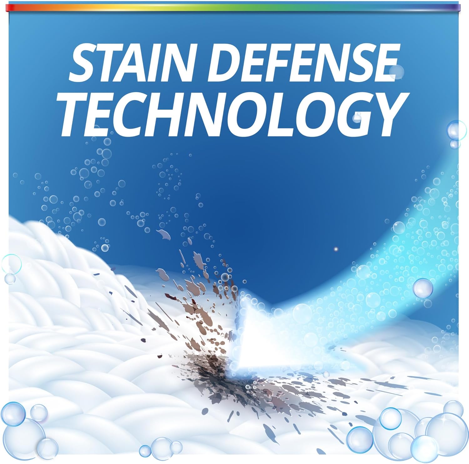 Stain Defense Technology: Combines with advanced Oxi brightening power to lift and remove tough stains.