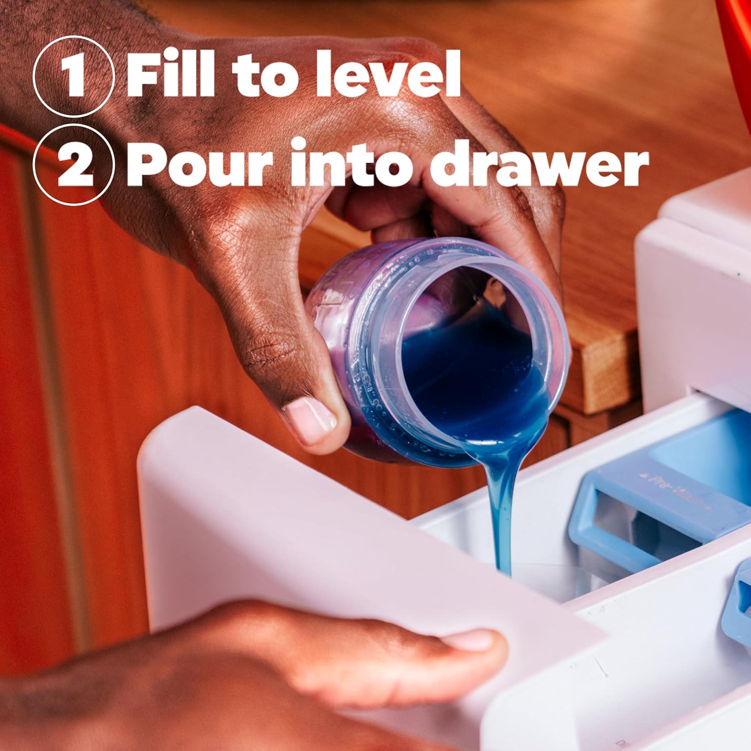 Infused with fabric care ingredients, this detergent helps prevent color fading and keeps clothes looking newer, longer. Its 2X concentrated formula means you get more power in every drop—so you use less while still getting a superior clean.