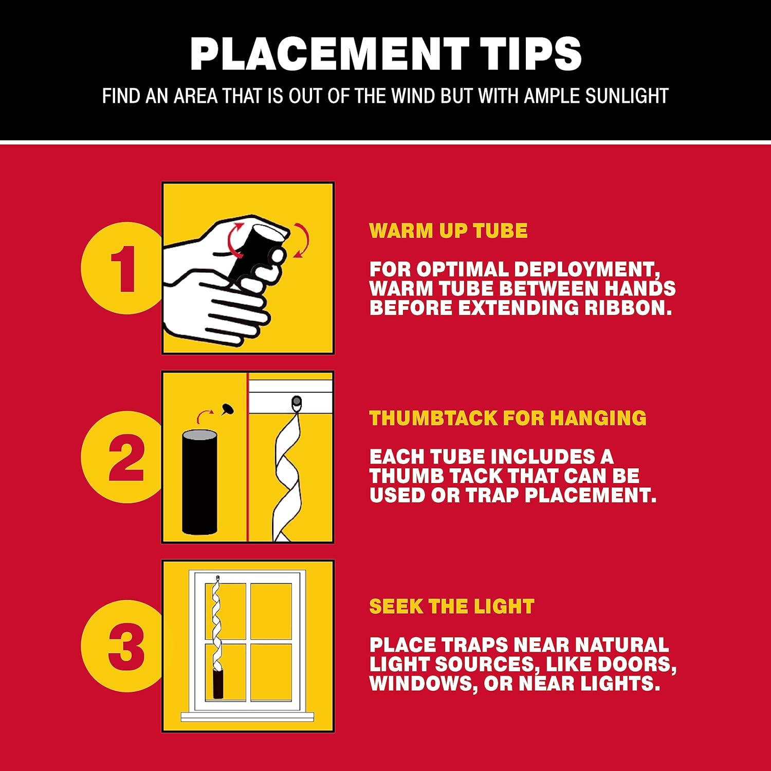 - READY TO USE: Bug and Flying Insect glue ribbons are designed to be used right out of the box. Ready to use without other bait, the traps are fast-acting and easy to install. For best use, hang traps in areas where flies and bugs are most populous. Scented with a non-toxic formula to attract insects, the Scented Fly Ribbon is safe to use indoors and outdoors. Our products are tested under the harshest field conditions to ensure maximum reliability for any level of pest control expert.