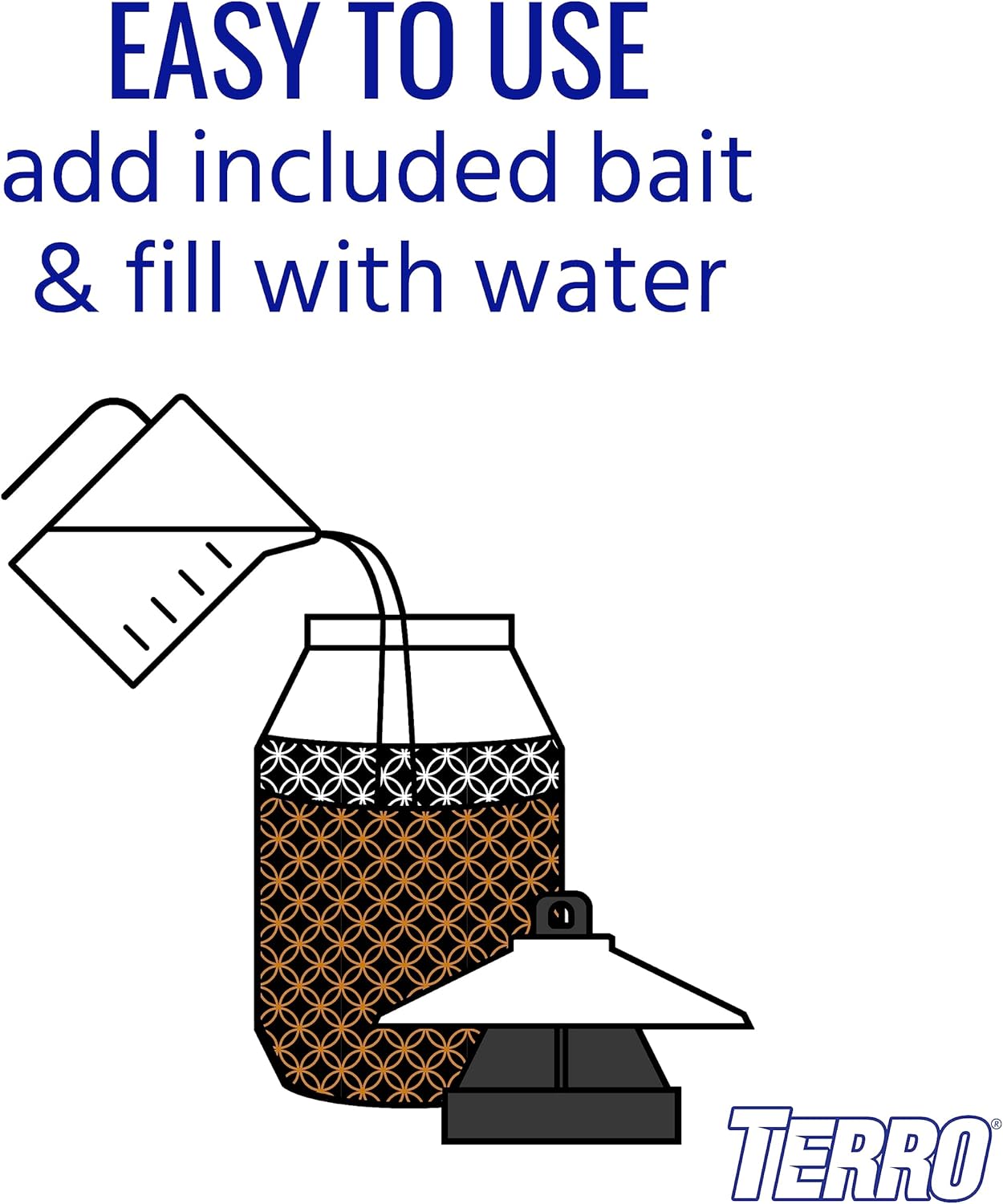 - Easy to Use – Simply pour in the bait, then add water to the fill line and swirl to mix. Add more water as needed to keep the bait moist and flies submerged