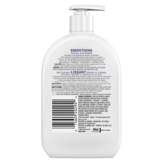 Olay Face Wash, Daily Facial Cleanser with Retinol, Peptides & Glycerin - Smoothing, Noursihes Skin Surface, Hydrates while Cleansing - Sulfate-Free, Paraben-Free, 16 Oz