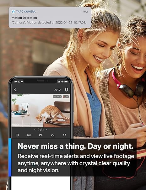 2-Way Audio + Built-in Siren – Talk and listen via the Tapo app; sound an alert if needed