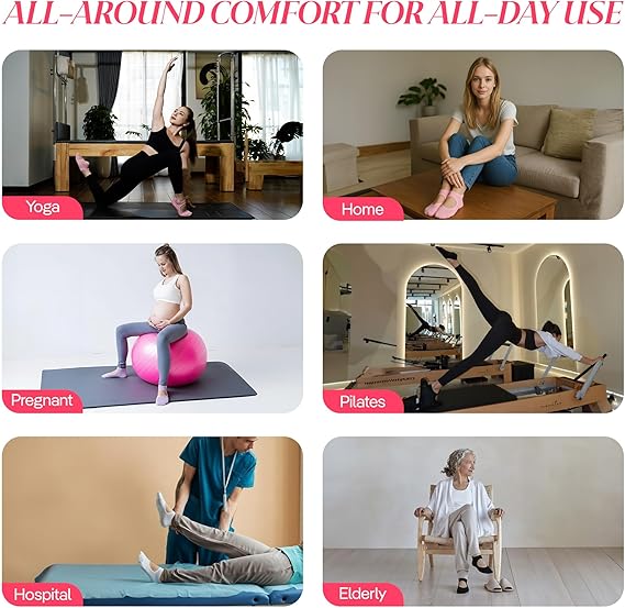 - Non-Slip Design for Enhanced Stability: Featuring premium silicone grips on the sole, these grip socks provide superior traction and balance, ensuring safety during yoga, Pilates, barre, and dance. Great as yoga socks with grips for women or non-grip socks for added flexibility and stability in every session.