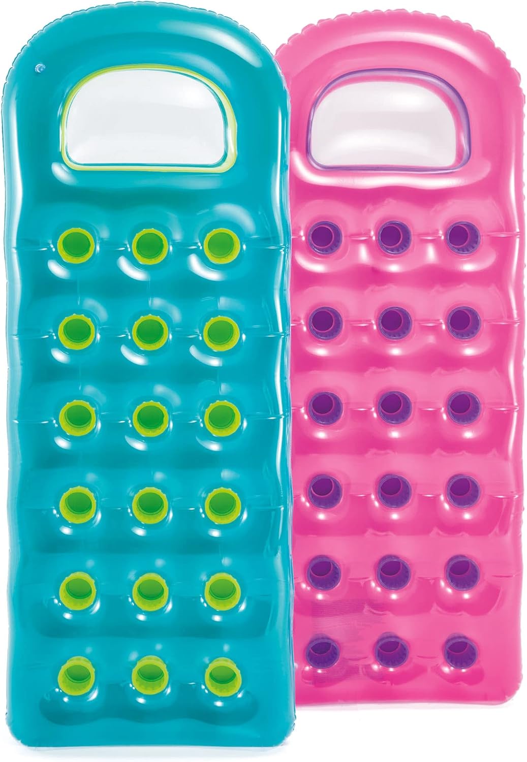 - INTEX 18-Pocket Inflatable Pool Float Lounger with Pillow – 74" x 28" Raft for Adults – Suntanner Swimming Mat, Assorted Colors