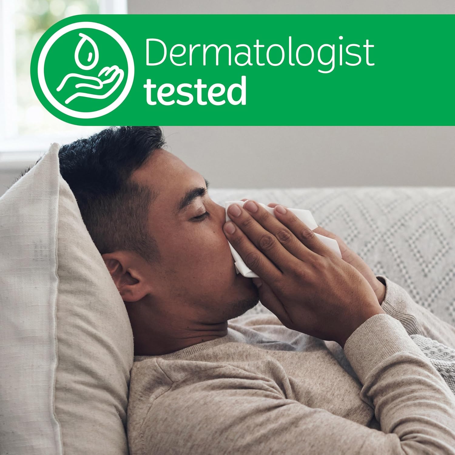 Soothe and protect your skin with Kleenex Lotion Facial Tissues infused with coconut oil, aloe, and vitamin E. This pack includes 4 cube boxes, each with 60 premium 3-ply tissues, providing 240 total tissues. Perfect for cold and allergy season, these ultra-soft tissues are gentle on sensitive noses and help prevent irritation from frequent wiping.